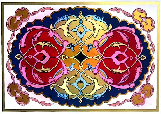 Projelerimizi yaparken Vitray teknikleri ve Türk Hat Sanatı Örnekleri yazılarımızdaki yöntemlerin aynısını kullandık. Geleneksel projemizin tek farklı olduğu aşama boya olarak guaj boya ve yaldızlı guaj boya kullanılmasıdır.