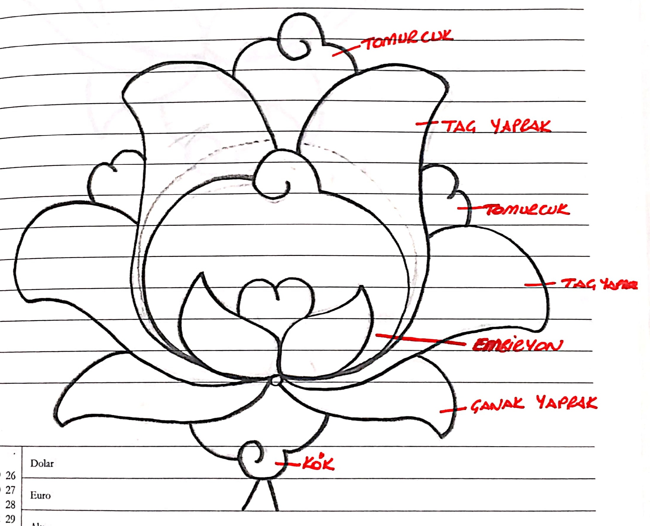 3) Kökten giren sap veya dal, daire yada elips şeklinde motifin uç kısımlarından çıkar.