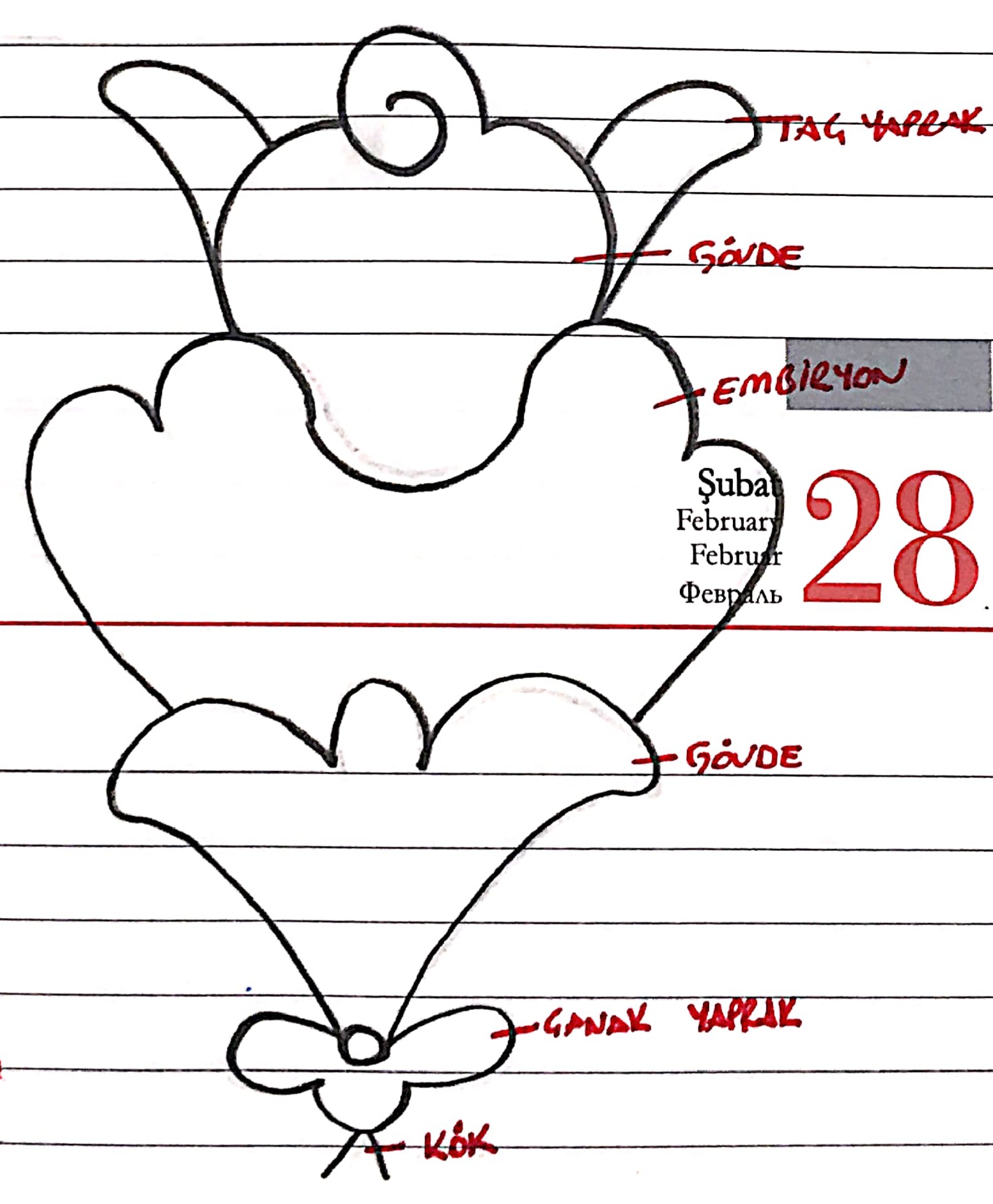 Yaprağın detaysız haline “iskelet” denir.