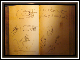 Fatih’in çocukluk yıllarında, üzerine kendi elleriyle resimler yapıp, yazılar yazdığı bir defteri vardı. İstanbul Tıp Tarihi Enstitüsü Müdürü Süheyl Ünver tarafından neşredilen bu defter, bize; Fatih’in çocukluk şahsiyetine, tahsil ve terbiyesine, öğrendiği dillere, zevklerine, hocalarına dair mühim bilgiler verecek işaretler taşımaktadır. Süheyl Ünver’in 20 yıl süren ciddi bir araştırmayla sunduğu bu defterden, Türk Milleti’ne bir imparatorluk kazandıracak çocuğun çok kesin çizgilerle resim yaptığı, yani Fatih’in ressamlığını öğreniyoruz. Bu resimler, bugünkü karakalem çalışmalarına benzeyen fakat malzeme olarak kamış kalemle ve mürekkeple çizilmiş güçlü çalışmalardır. Fatih, defterine hocalarının portrelerini çizmiş, hocalarına verdiği nur yüzlü çehrelerle bize onların hem maddi hem de manevi hüviyetlerini belirtmiştir. Babasının sarayında rehine olarak veya başka sebeplerle bulunan, belki de kendisine Yunanca öğreten Hristiyan tiplemelerinin görünüşlerini çizmiştir. Bu insan figürlerinin başka başka kimselere ait oluşu ve Fatih’in, mesela bir burun çizmek için kesin çizgilerle çalışması, onun keskin görünüsünü ve sağlam ifadesini belirtmektedir. Defterde çizilmiş olan özellikle at resimleri, at başları, at üzerinde bir ömür geçirecek cihangirin at sevgisini düşündürecek özelliktedir. Diğer resimler, Türk süsleme sanatında kullanılan çiçek ve yaprak motiflerle leylek, kartal, kuş resimleridir. Bu resimler, özellikle portreler, bir Osmanlı şehzadesinin hem de insan resmi yapması ve resim yaparken kalemini kılıç gibi kullandığını hissettirecek bir üsluba varması bakımından çok mühimdir. Defterde Fatih’in, Osmanlı sultanlarının imzaları demek olan tuğrası da kendi eliyle birkaç defa çizilmiştir. Çocuk Fatih’in tuğrasına, daha o yaşta “el-Muzaffer Daima” ibaresini de yerleştirmiş olması, özellikle dikkat çekiyor. Defterin bir yerine Mehmed, Ali, Yusuf adları yazılmış, bir yerde İslami Türk alfabesi ve ebcet sıralanmış, bir başka yerde Yunan alfabesi yazılmıştır. Bu son alfabeyle, Fatih’in daha çocukken Yunanca öğrendiği hakkındaki tarihi bilgiyi desteklemektedir. Aynı defterdeki Farsça beyitler, çocuk Fatih’in zengin kültürünü bütünleyen işaretlerdendir.