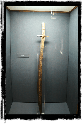 Fatih Sultan Mehmed’in savaşlarda kullandığı kılıcı çelik, som (balık dişi), demir ve altından yapılmış. Uzunluğu 125 cm. Üzerinde kılıç ustasının yazdığı bir dua yer alıyor:
