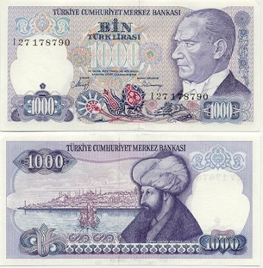 1000 Türk Lirası banknotun arka yüzü (1986-1992)